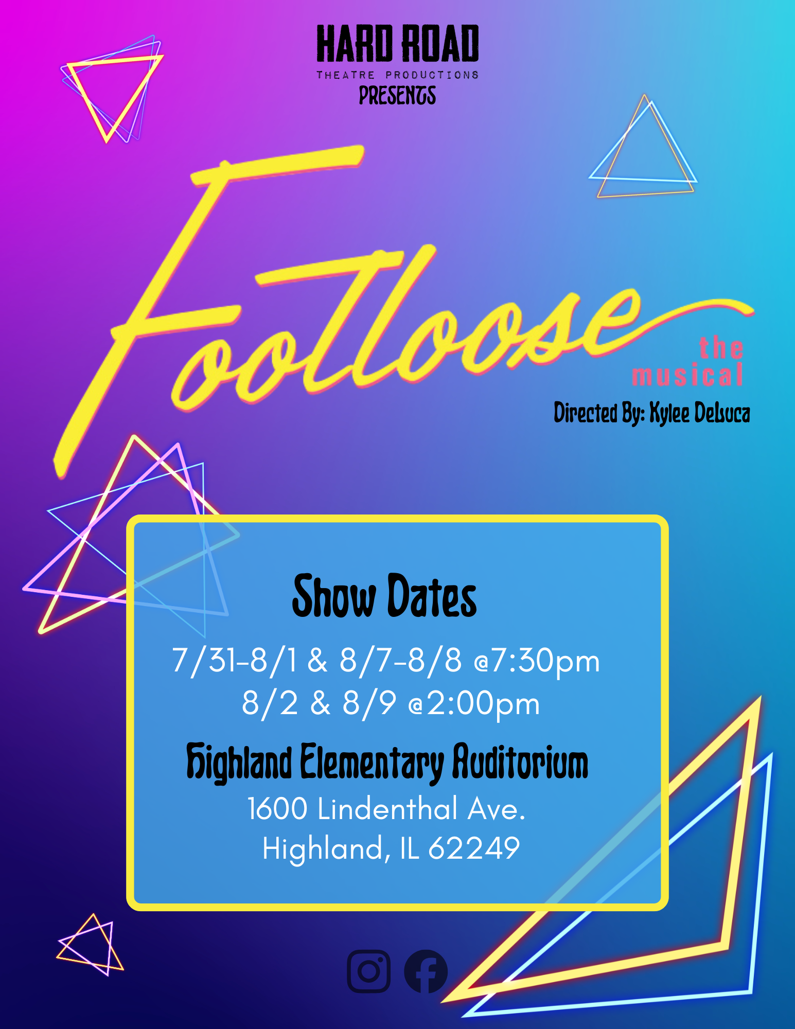 We're glad you decided to stop by! For the last 20 years, Hard Road Theatre has been Highland's Premier Community Theatre Group, dedicated to providing high-quality shows to people of all ages within our community. We can't wait to share the exciting new opportunities and partnerships we have been working on as we're getting ready to enter our twentieth season!