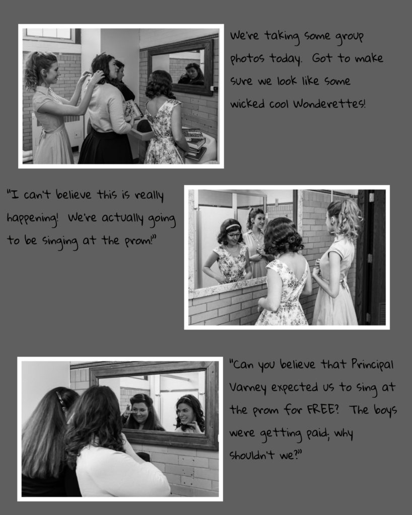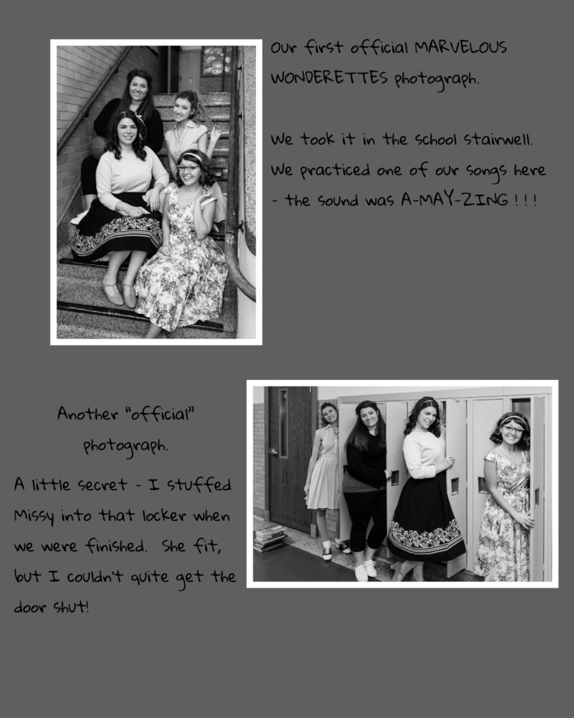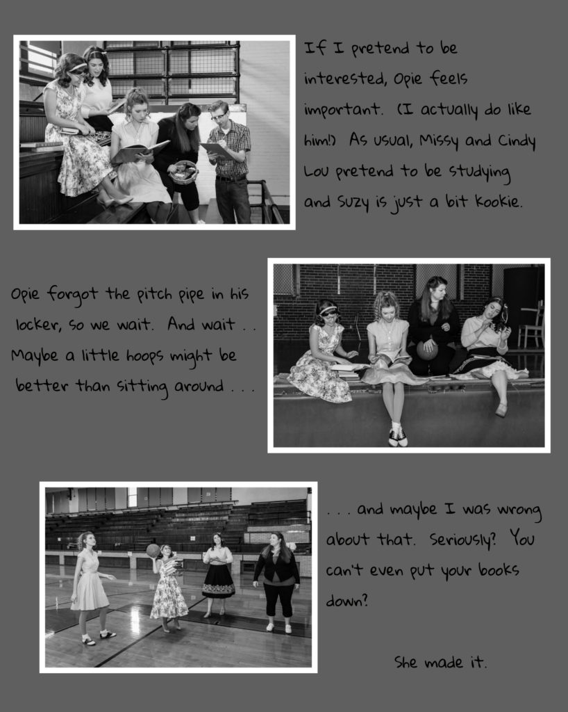 Well, anyway, like I said, my name is Betty Jean (that's me with the basketball) and me and my gal pals formed a doo wop group a few months ago. We were always best friends and we all sing real good so why not form a group? (I think I sound the best, but Cindy Lou always tries to hog the spotlight.)